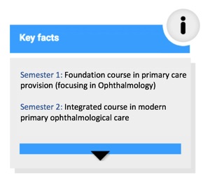 Students follow an intensive course in the first two semesters that aims to provide solid knowledge on the fundamentals of primary healthcare systems, focusing on primary ophthalmological care provision. The third term is dedicated exclusively to the Master’s dissertation.
