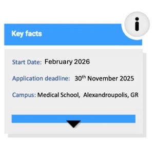 The MSc in Primary Ophthalmological care is being offered by the Faculty of Medicine of the Democritus University of Thrace.
